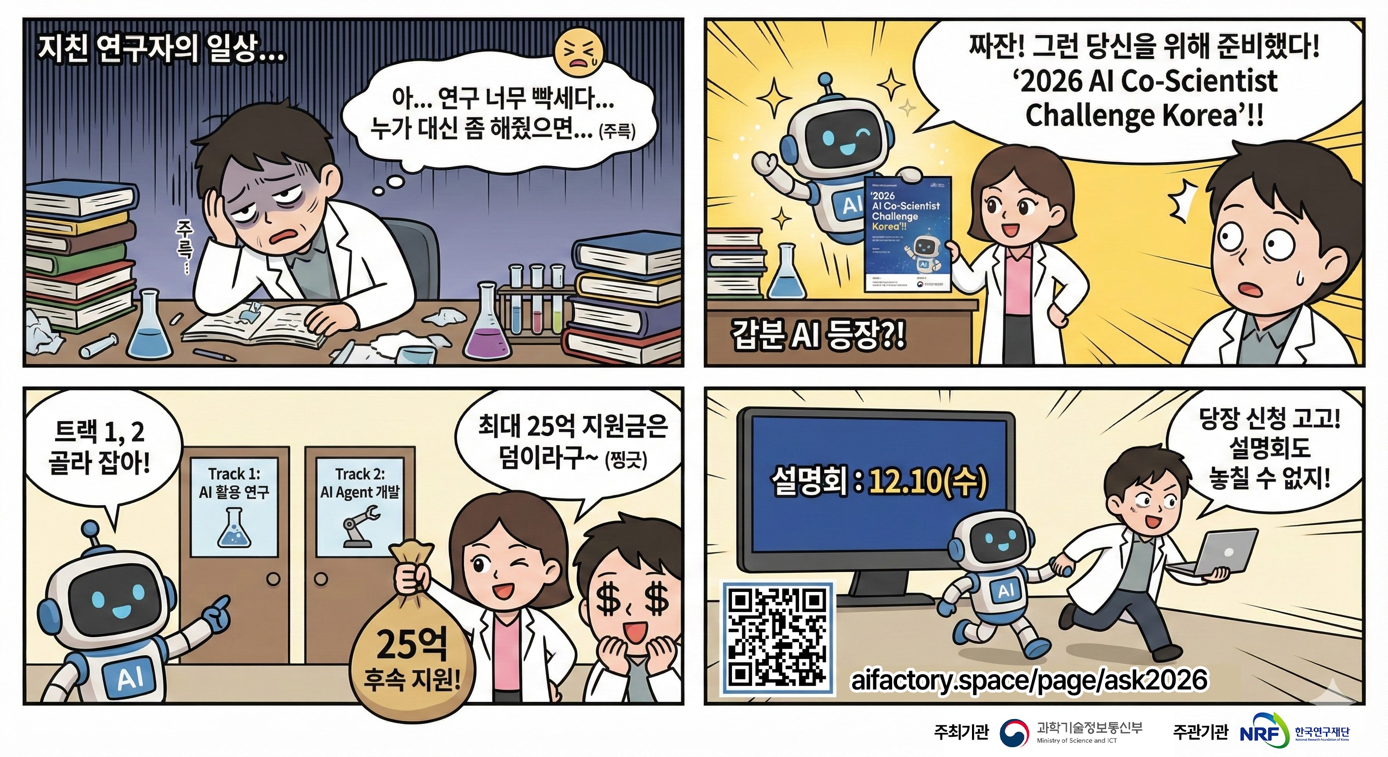 fnctId=bbs,fnctNo=676 RSS 2.0 1867 건 게시물 검색 제목 작성자 공통(상단고정) 공지 게시글 게시글 리스트 「K-문샷 프로젝트 대국민 공모전」개최 안내 새글 작성자 컴퓨터과학전공 조회 9 첨부파일 1 작성일 2025.12.16 [서울시 교육비 전액+취업지원] AI를 활용한 UX/UI 디자이너 취업아카데미 과정 안내 새글 작성자 컴퓨터과학전공 조회 39 첨부파일 0 작성일 2025.12.12 - 모집기간 : 2025년 12월01일(월) ~ 12월14일(일) 까지 ( 조기에 마감될 수 있습니다. )- 교육기간 : 2025년 12월29일(월) ~ 2026년 4월15일(수)- 교육시간 : 오전10시 ~ 오후5시 ( 주5회, 6시간/일 ) - 교육장 장소 : 서울시 노원구 동일로 174길 27, C동 1층 청년취업사관학교 새싹 노원캠퍼스 ( 태릉입구역 앞 3분거리 )- 모집인원 : 26명 ( 수강료 전액 서울시 지원 ) - 교육대상자 : * UX/UI 디자이너로서 취업및 창업을 희망하는 청년구직자 * 만15세 이상의 서울시 거소자 ( 주민등록등본상 서울시 거주자 ) * 미 취업자만 가능하며 고용보험을 납입하고 있으면 지원이 불가능합니다. - 신청방법 : 서울경제진흥원 (SeSAC) 홈페이지 회원가입후 본 교육의 수강 신청하기 클릭 ( 자세한 내용은 첨부파일 참고 ) ★2026 상. 넷마블 채용전환형 인턴십 (~12/18, 17:00까지) 작성자 컴퓨터과학전공 조회 41 첨부파일 0 작성일 2025.12.10 구분내용공고명2026상반기 넷마블 채용 전환형 인턴십 (~12/18 17:00까지)공고접수기간2025.12.08~2025.12.18 17시 까지공고 URLhttps://career.netmarble.com/announce/view?anno_id=1721 두나무 x 티오리가 함께하는 Web3보안 전문가 양성과정 UPSide Academy 4기를 작성자 컴퓨터과학전공 조회 44 첨부파일 4 작성일 2025.12.09 UPSide Academy는 핀테크와 블록체인의 미래를 선도하는 두나무, 글로벌 사이버보안 전문가 그룹 티오리가 만나 블록체인 기술을 기반으로 탈중앙화된 다음 세대의 Web3 사이버보안 전문가를 양성하는 소수정예 프로그램입니다. 두나무x티오리의 글로벌 최고 수준의 멘토들과 탑티어 사이버 보안 전문가로 성장할 넥스트 업사이더를 모집합니다. <모집대상>- 사이버 보안에 흥미를 갖고 역량을 키우고 싶은 대학(원)생, 휴학생, 일반인(비 재직자)- 정보보안 창업에 관심있고 꿈꾸는 예비 창업자* 사이버 보안, IT 관련 교육 프로그램 수료자 우대* 주 7일(월~일) 오전 10시부터 오후 7시까지 오프라인 전 과정 참여 가능한 자(휴학/퇴직 처리 필수) <4기 선발 일정>- 서류 접수: 2025.12.05.(금) ~ 2026.01.05.(월) 23:59까지 - 실기 평가: 2026.01.09.(금)~11.(일) *온라인 개별 진행- 면접 전형: 2026.01.17(토) 대면면접 *실기 합격자에 한함 *강남역 인근 미림타워 「2026 AI Co-Scientist Challenge Korea」대회 개최 안내 작성자 컴퓨터과학전공 조회 173 첨부파일 1 작성일 2025.12.08 「2026 AI Co-Scientist Challenge Korea」대회 공고과학기술정보통신부에서 주최하는「2026 AI Co-Scientist Challenge Korea」대회를 다음과 같이 공고하오니, 관심 있는 참가자(팀)들의 많은 참여를 바랍니다. 1. 대회 개요□ (목적) 과학기술 연구 동반자로서 AI의 가능성을 탐색하고, 연구자와 AI 간 새로운 연구 협업 촉진을 통해 도전적 연구개발 문화 조성□ (참여기관) (주최)과기정통부 / (주관)한국연구재단 / (후원)한국과학AI포럼, AIFrenz학회, LG AI연구원, NHN클라우드, 한국과학기술연구원, 한국 과학기술정보연구원, 한국전자통신연구원 2. 대회 주제◈ 자연과학 또는 공학 분야의 모든 주제를 대상으로 하는 AI 활용 연구로, 2가지 트랙으로 구성·진행ㅇ Track1: AI 활용 과학기술 연구 수행 및 연구보고서 작성(지정주제* 자유주제) * 바이오, 재료·화학, 지구과학, 반도체·디스플레이, 이차전지, 에너지, 수학 등 7대 분야ㅇ Track2: 과학기술 AI Agent 개발(자유주제) 3. 참가 방법□ (참가 대상) Track 1·2 구분 없이, 본 대회에 관심 있는 국내‧외 누구나 참여 가능하며, 개인 또는 팀으로 참가(이하 “참가팀”)※ 단, 접수 마감일 전일까지 「국가연구개발혁신법」제32조제1항 및 시행령 제59조제1항에 의하여 참여 제한이 종료되지 않은 자는 신청이 불가함※ 신청자 개인은 1개 팀에만 참가 가능※ 신청자(팀)는 Track1,2 각각 지원 가능하지만, 동일 Track 내 중복 지원은 불가 □ (신청 요령) 공고문 및 대회 홈페이지 참조ㅇ (공고 기간) ’25.12.3.(수) 13:00 ~ ’26.1.31.(토) 18:00 까지ㅇ (참가신청 기간)- Track1: ’25.12.10.(수) 13:00 ~ ’26.1.31.(토) 18:00 까지- Track2: (사전제안서) ’25.12.10.(수) 13:00 ~ ’26.1.2.(금) 18:00 까지 ( AI Agent ) ’26.1.19. (월) 09:00 ~ ’26.4.3.(금) 18:00 까지※ 사전 심사에 통과한 팀에 한해 제출(10팀 내외, 통과 여부는 1월 중 별도 안내 예정)ㅇ (접수처) 대회 홈페이지(https://aifactory.space/page/ask2026) 상단 [접수] 메뉴 ㅇ (신청방법) 대회 홈페이지를 통해 온라인 접수 (마감시간 이후 접수 불가) BGF리테일 2026년 동계 채용연계형 인턴모집 작성자 컴퓨터과학전공 조회 81 첨부파일 0 작성일 2025.12.03 ◆ 모집부서영업관리직군(전국) ◆ 전형일정서류접수(12월 중) → AI역량검사(12월 말) → 1차면접(1월 중) → 현장실습평가(1월 말~2월 중/3주간) → 최종면접(3월 초) → 최종 입사(3월 중)※상기 일정은 회사 사정에 따라 변경될 수 있습니다.※최종 입사 후 직영점 매니저 근무 및 교육과정